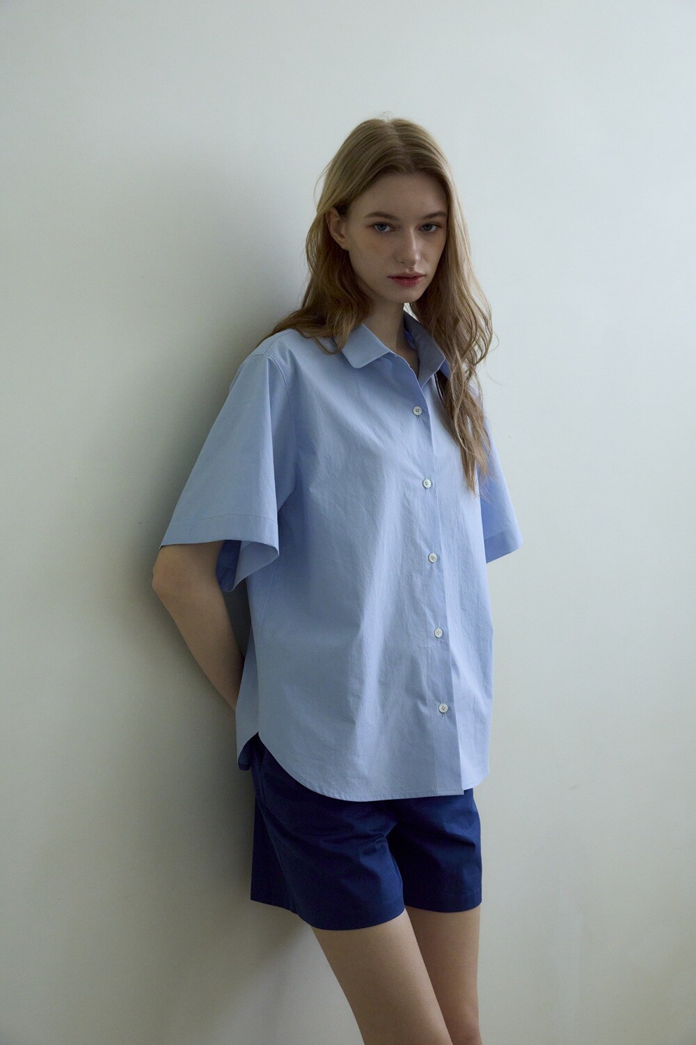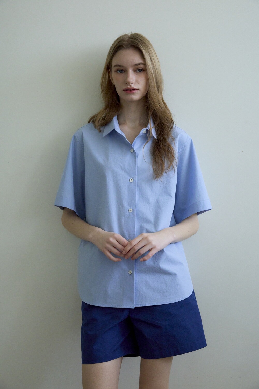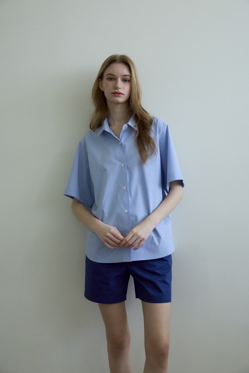 Basic round collar shirt_Blue