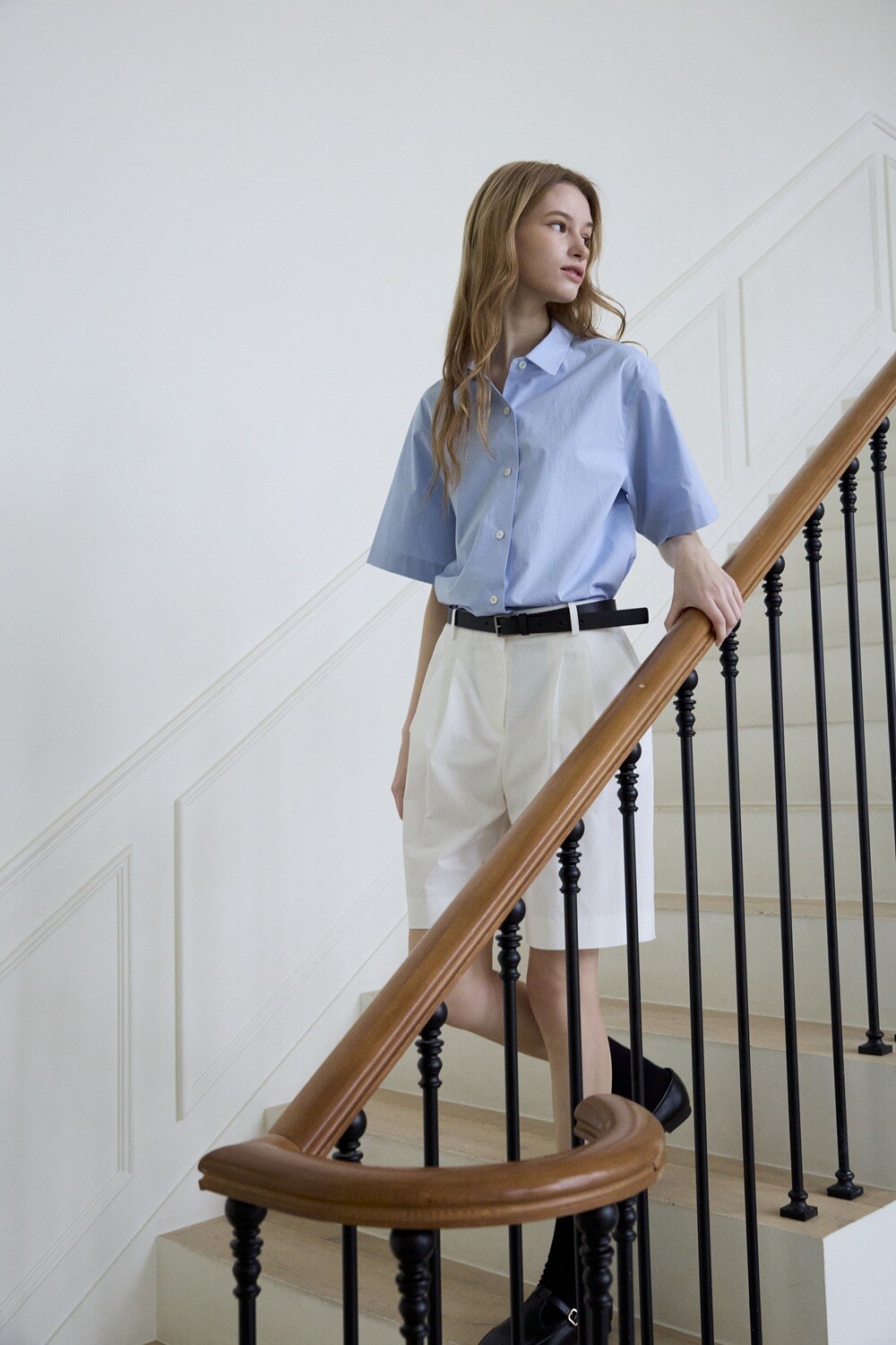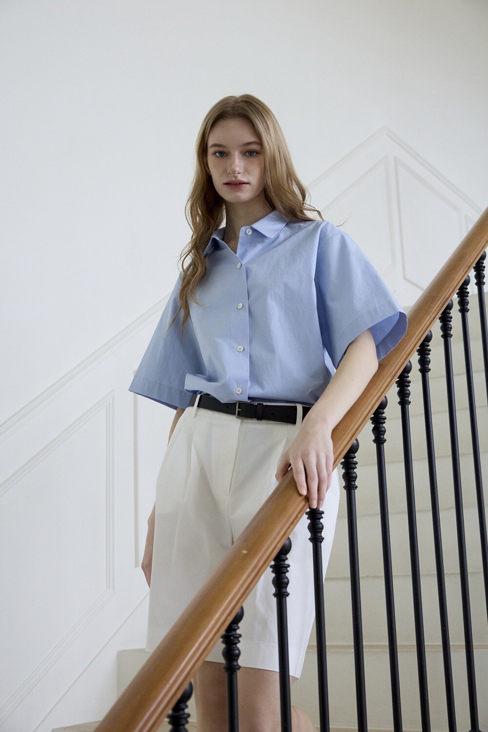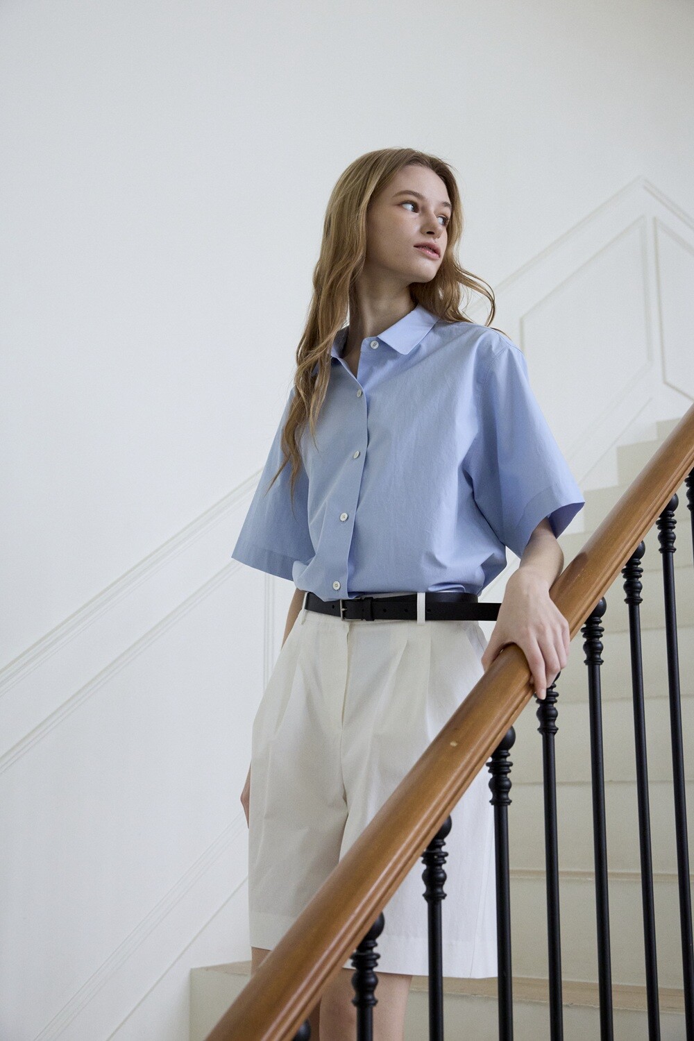 Basic round collar shirt_Blue