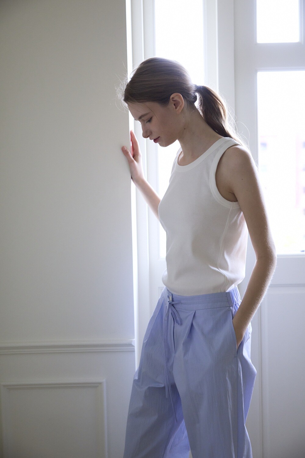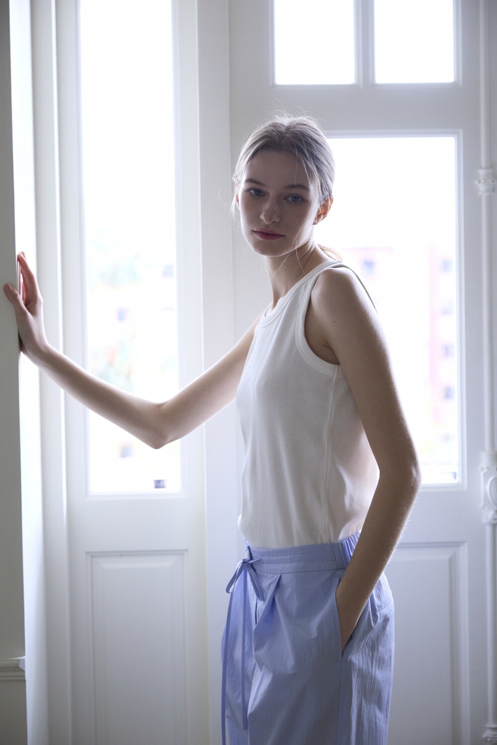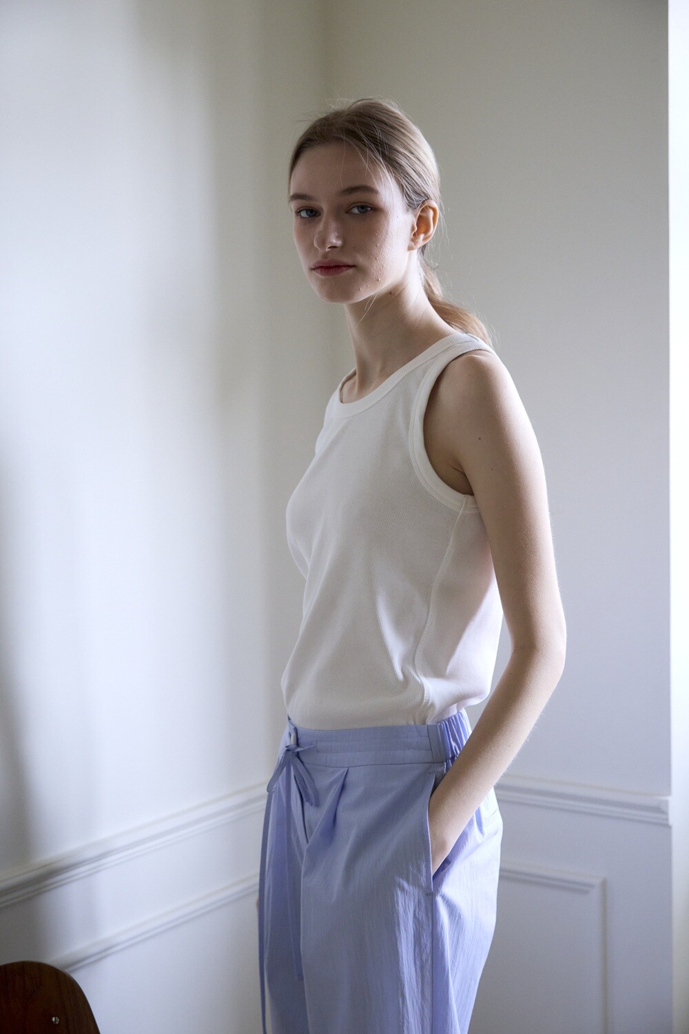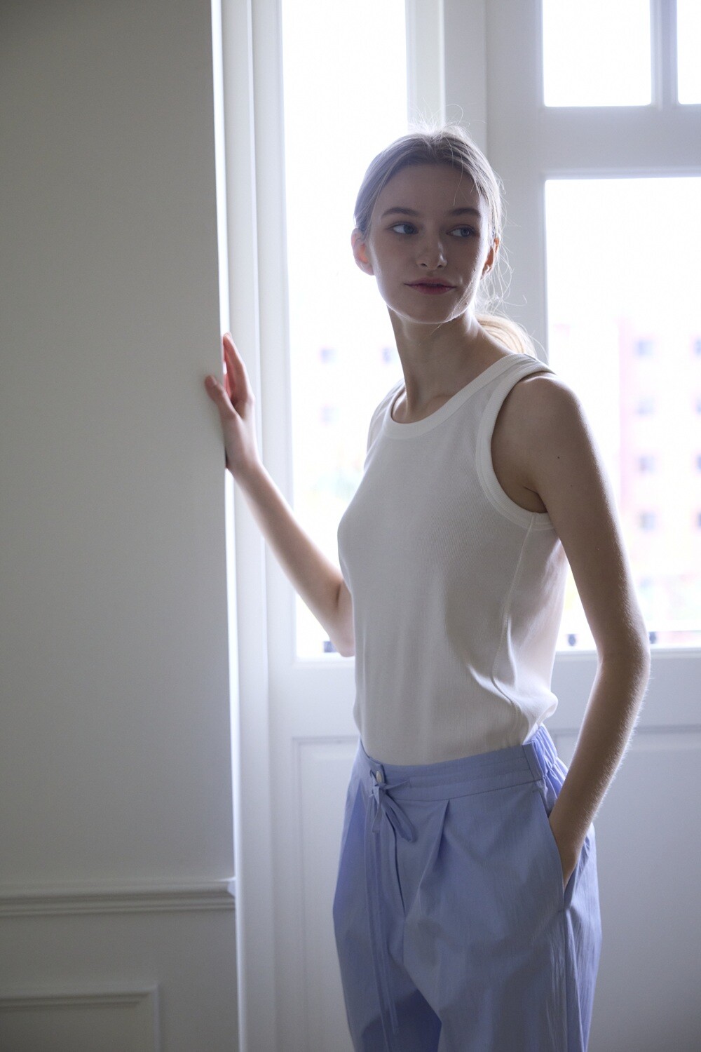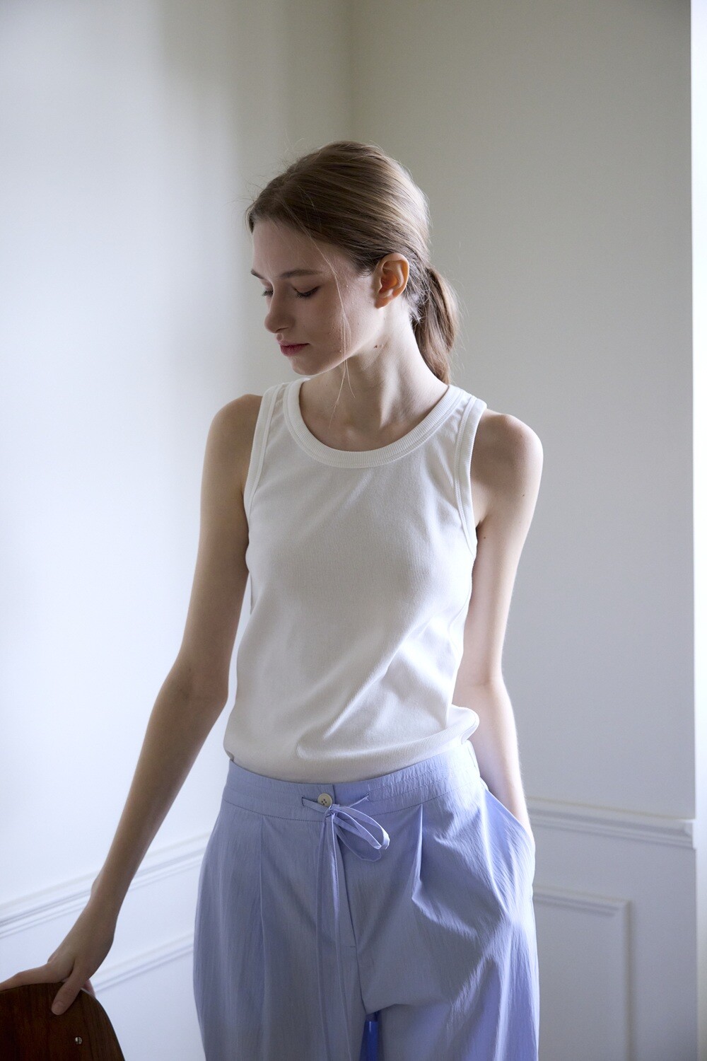 Cotton ribbed sleeveless t-shirt_White