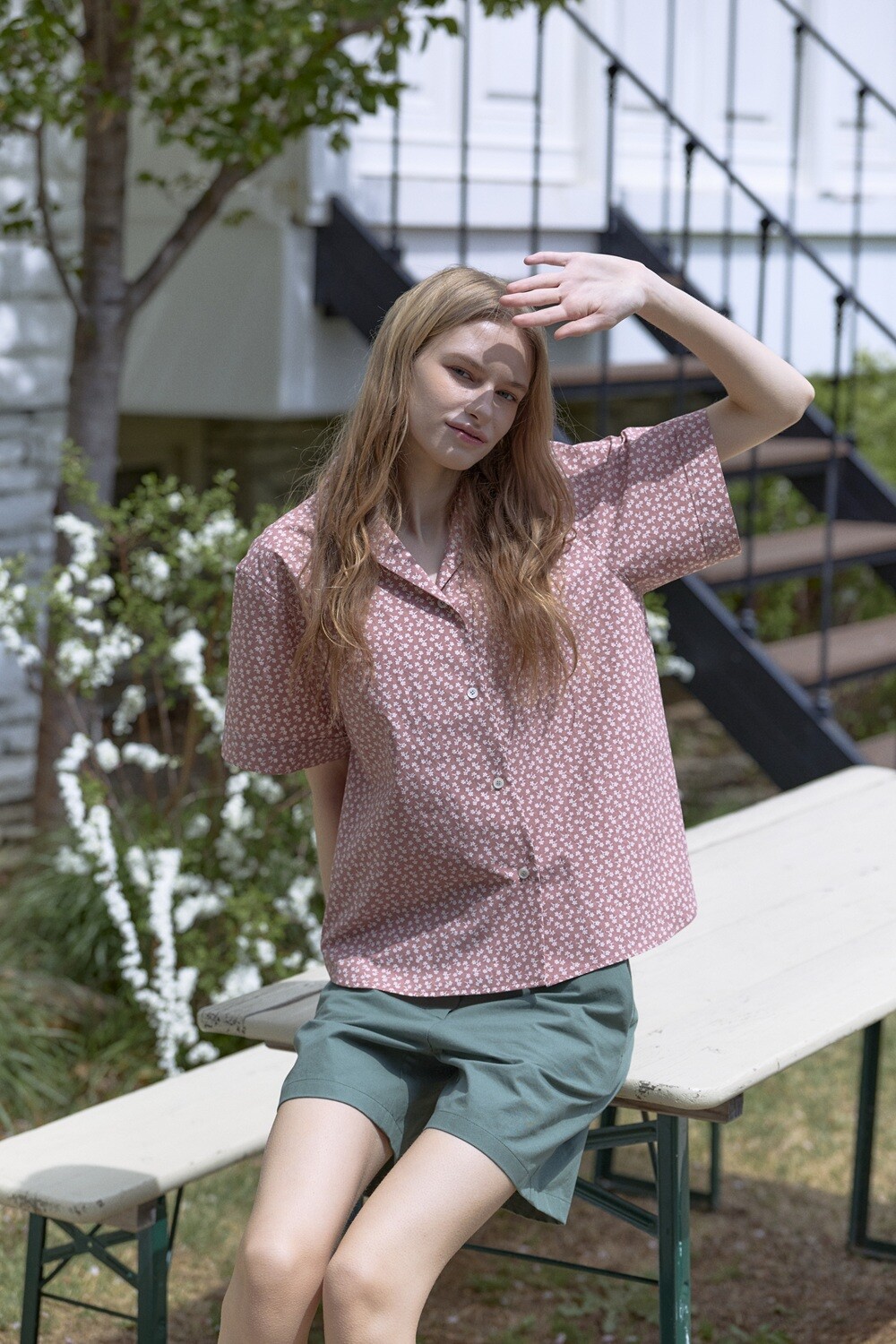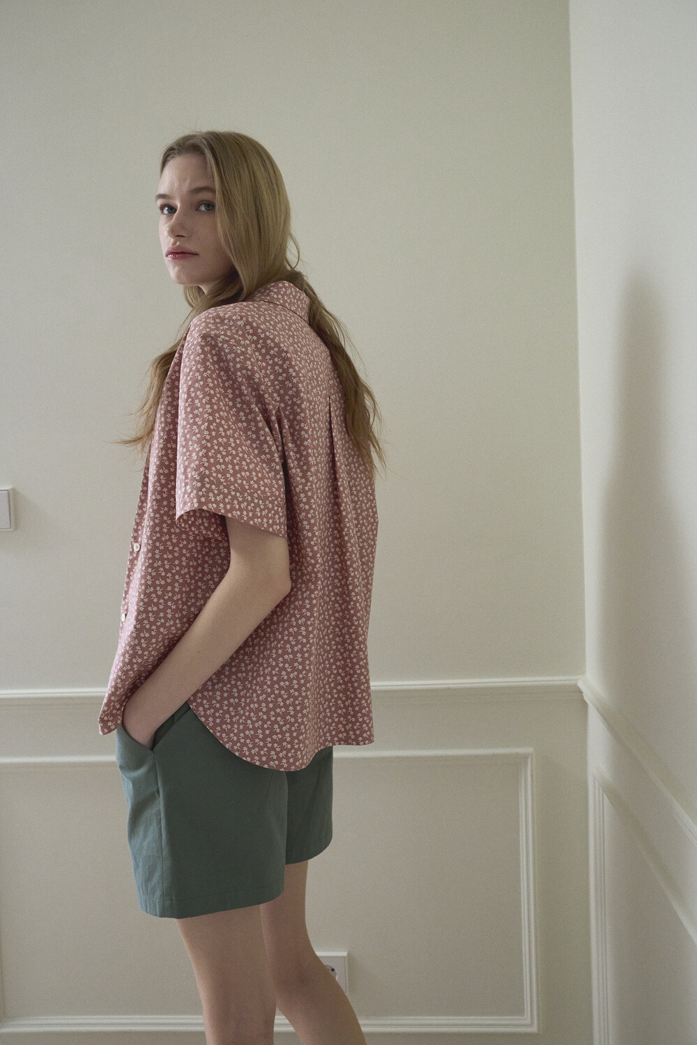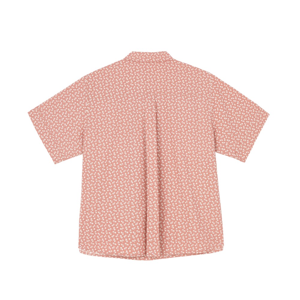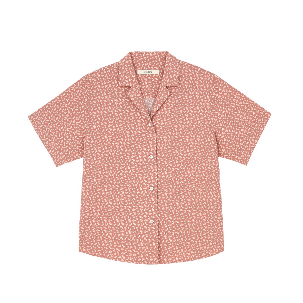 Flower printed cotton shirt_Red brown