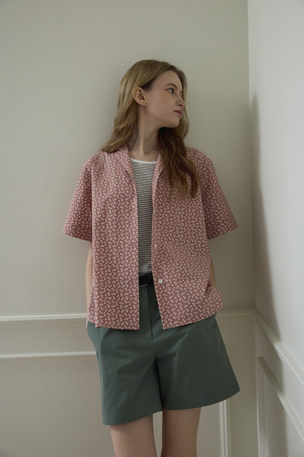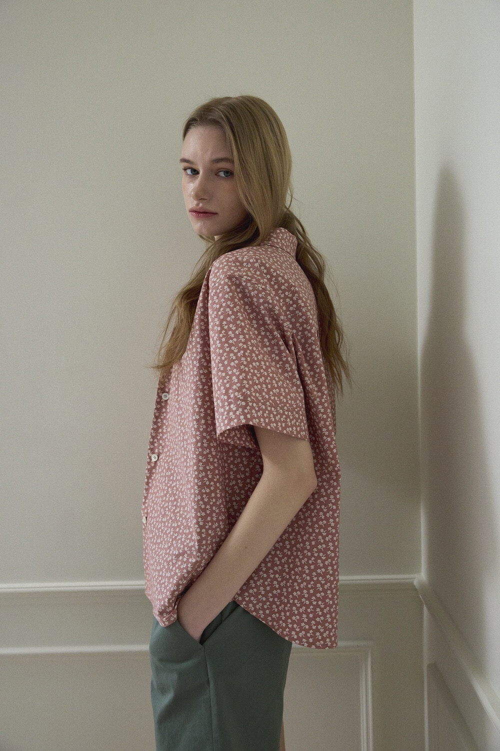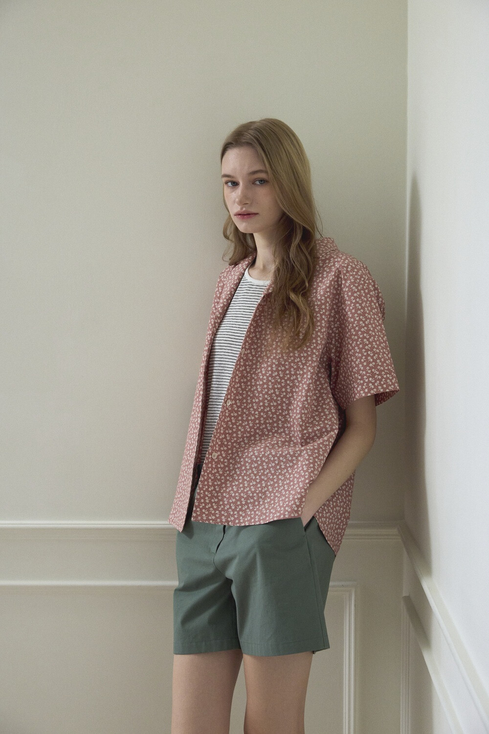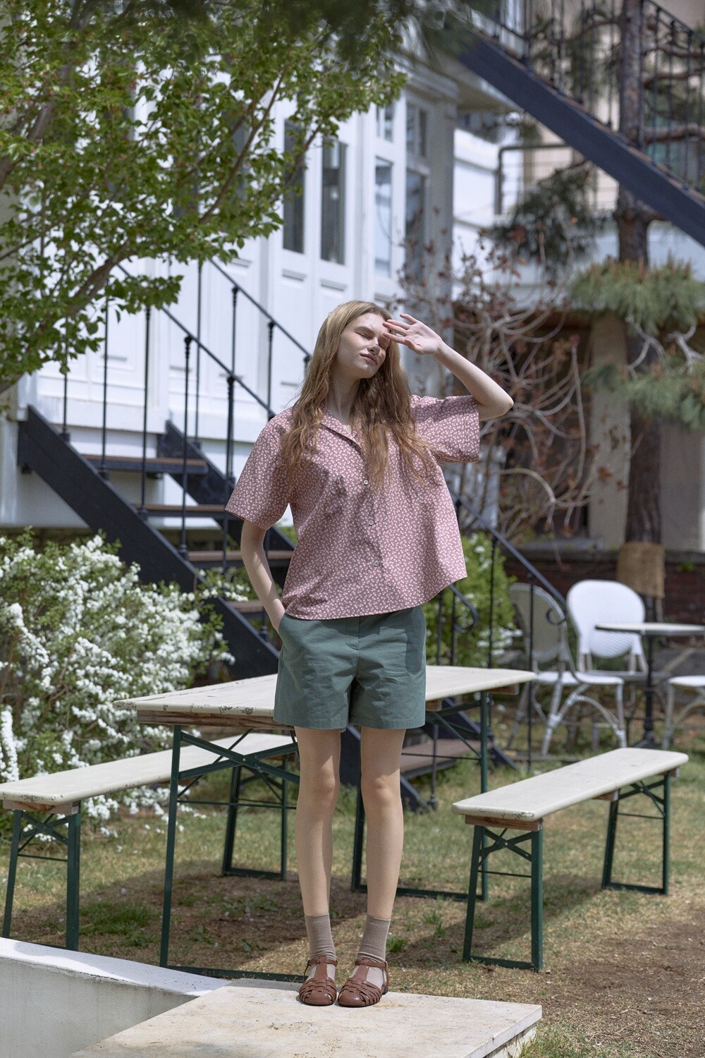 Flower printed cotton shirt_Red brown