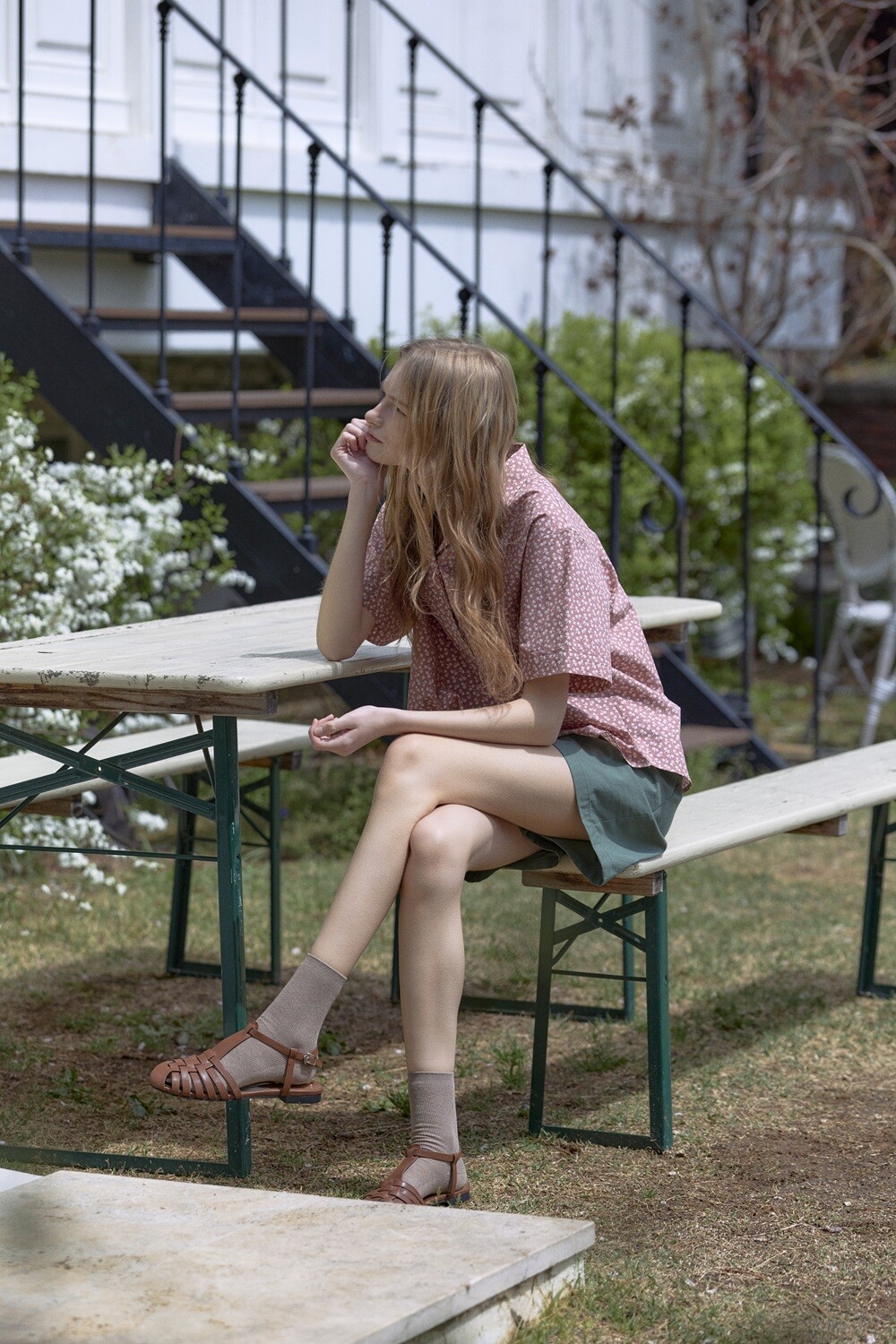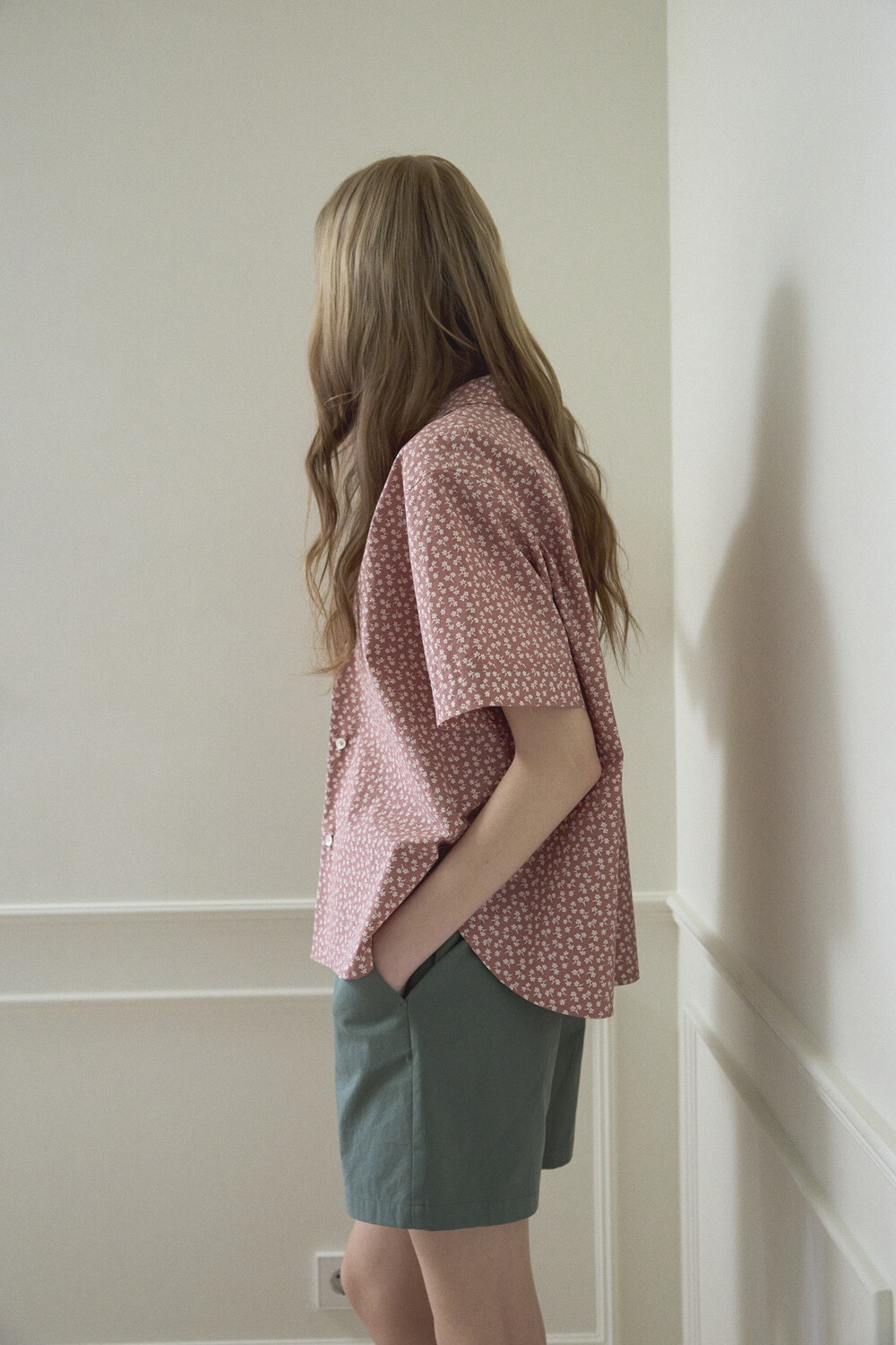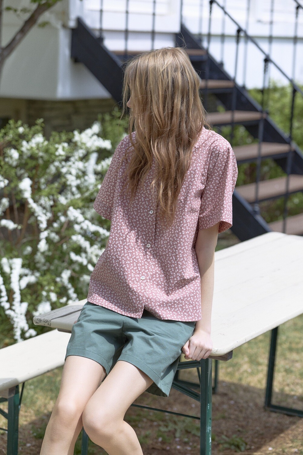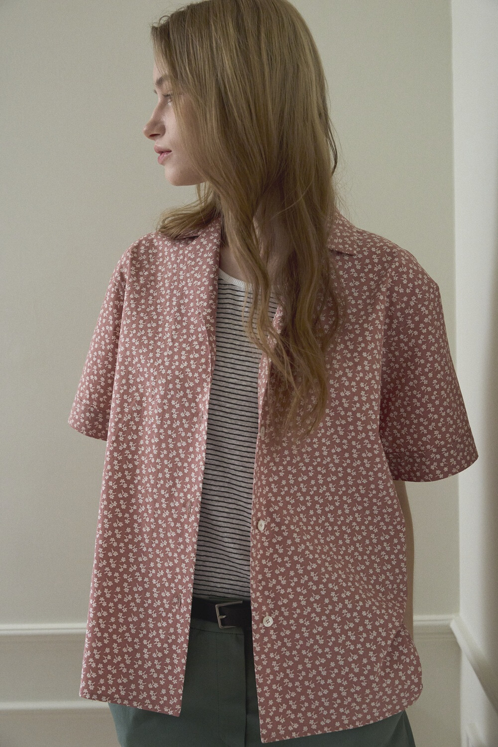 Flower printed cotton shirt_Red brown